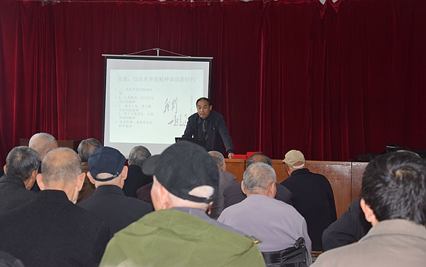 首先,韓保明以“以改革開放精神唱響新時代奮進篇章”為主題給大家講了一次生動的黨課,黨課圍繞改革開放的精神價值、改革開放精神內涵、新時代如何繼承和發揚改革開放精神三大方面闡述了改革開放40年來我們偉大祖國翻天覆地的變化和取得巨大成就。在中國特色社會主義進入新時代的今天,我們要重溫改革開放的精神內涵,不忘初心、牢記使命,繼承和發揚改革開放精神,為人民謀幸福,在決勝全面建成小康社會的征程中,奮力奪取中國特色社會主義偉大勝利。老黨員們個個聚精會神,認真聽講,不時點頭稱贊,感觸頗深。