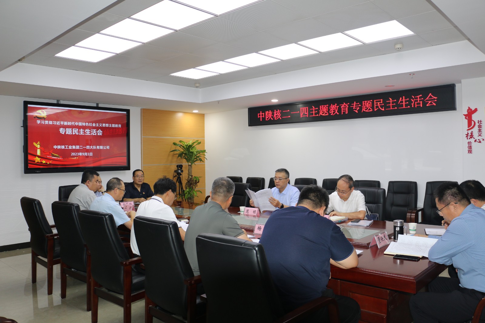 9月1日,公司召開領導班子學習貫徹習近平新時代中國特色社會主義思想主題教育專題民主生活會。會議緊緊圍繞習近平新時代中國特色社會主義思想,聚焦“學思想、強黨性、重實踐、建新功”總要求,對照凝心鑄魂筑牢根本、錘煉品格強化忠誠、實干擔當促進發展、踐行宗旨為民造福、廉潔奉公樹立新風具體目標,深刻檢視問題不足,認真開展批評與自我批評。集團黨委主題教育第二調研督導組組長、集團總會計師范明一行到會指導。公司黨委書記、董事長鄧盛波主持會議。