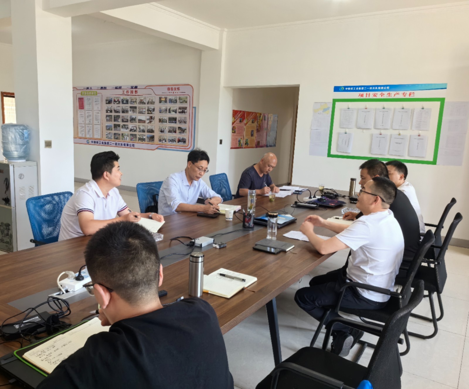 董連志對(duì)項(xiàng)目安全生產(chǎn)日志、安全會(huì)議培訓(xùn)等資料進(jìn)行了逐項(xiàng)檢査,針對(duì)安全檢査中發(fā)現(xiàn)的問(wèn)題,要求項(xiàng)目部限期整改;同時(shí)提出要嚴(yán)格落實(shí)安全生產(chǎn)責(zé)任制,做好安全生產(chǎn)工作,做好夏季防暑防汛工作。李陽(yáng)要求嚴(yán)格落實(shí)保密管理制度,做好項(xiàng)目資料保密工作。