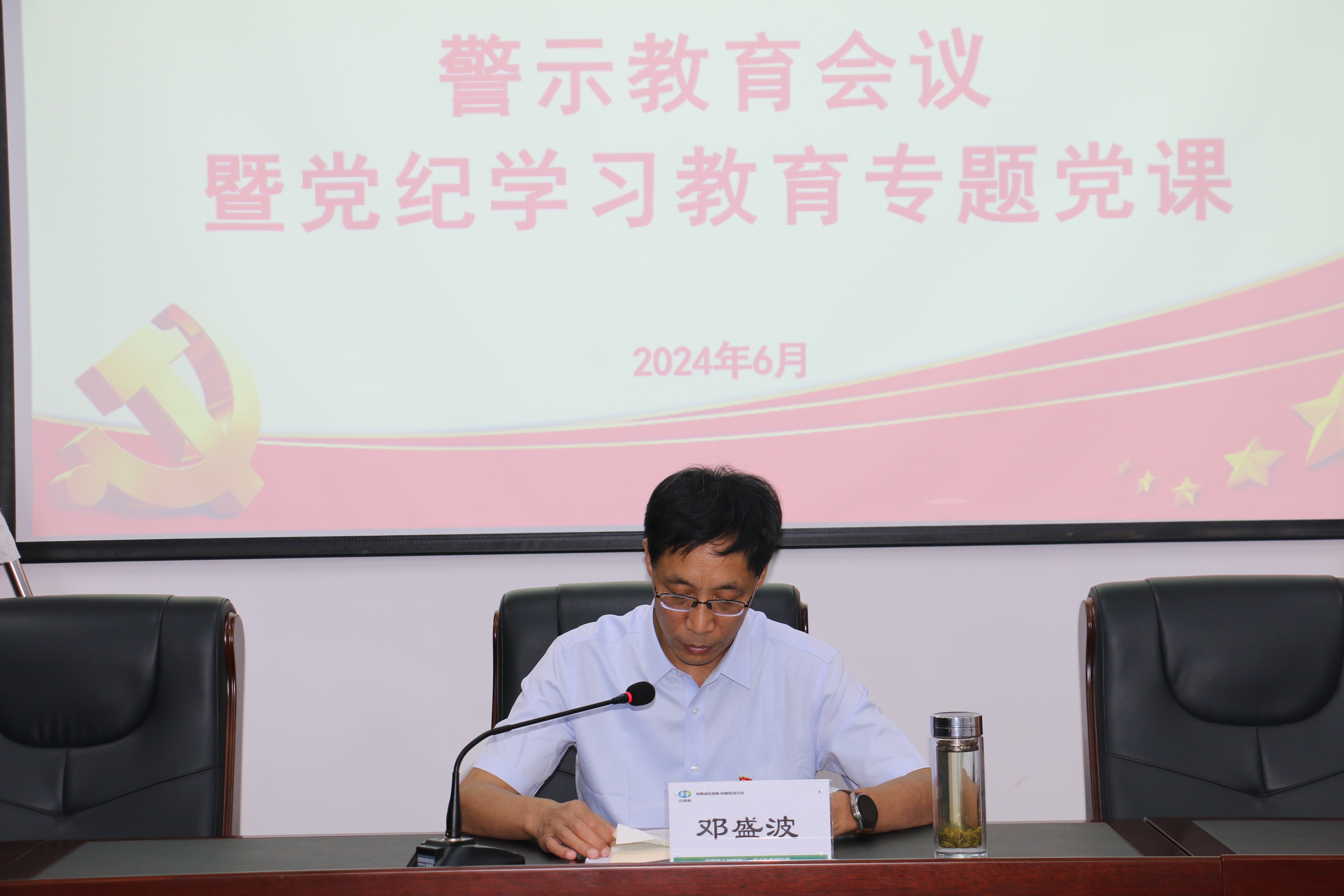 6月28日,公司召開警示教育會議暨黨紀學習教育專題黨課,深入學習貫徹習近平總書記關于全面加強黨的紀律建設的重要論述,集中觀看了警示教育片,通報了陜西省近年查處的國有企業黨員干部違紀違法案例及警示錄。公司黨委書記、董事長鄧盛波出席會議并講黨紀學習教育專題黨課,公司黨委副書記、總經理司金強主持會議。公司其他領導班子、中層干部及黨員近50人參加了會議。
