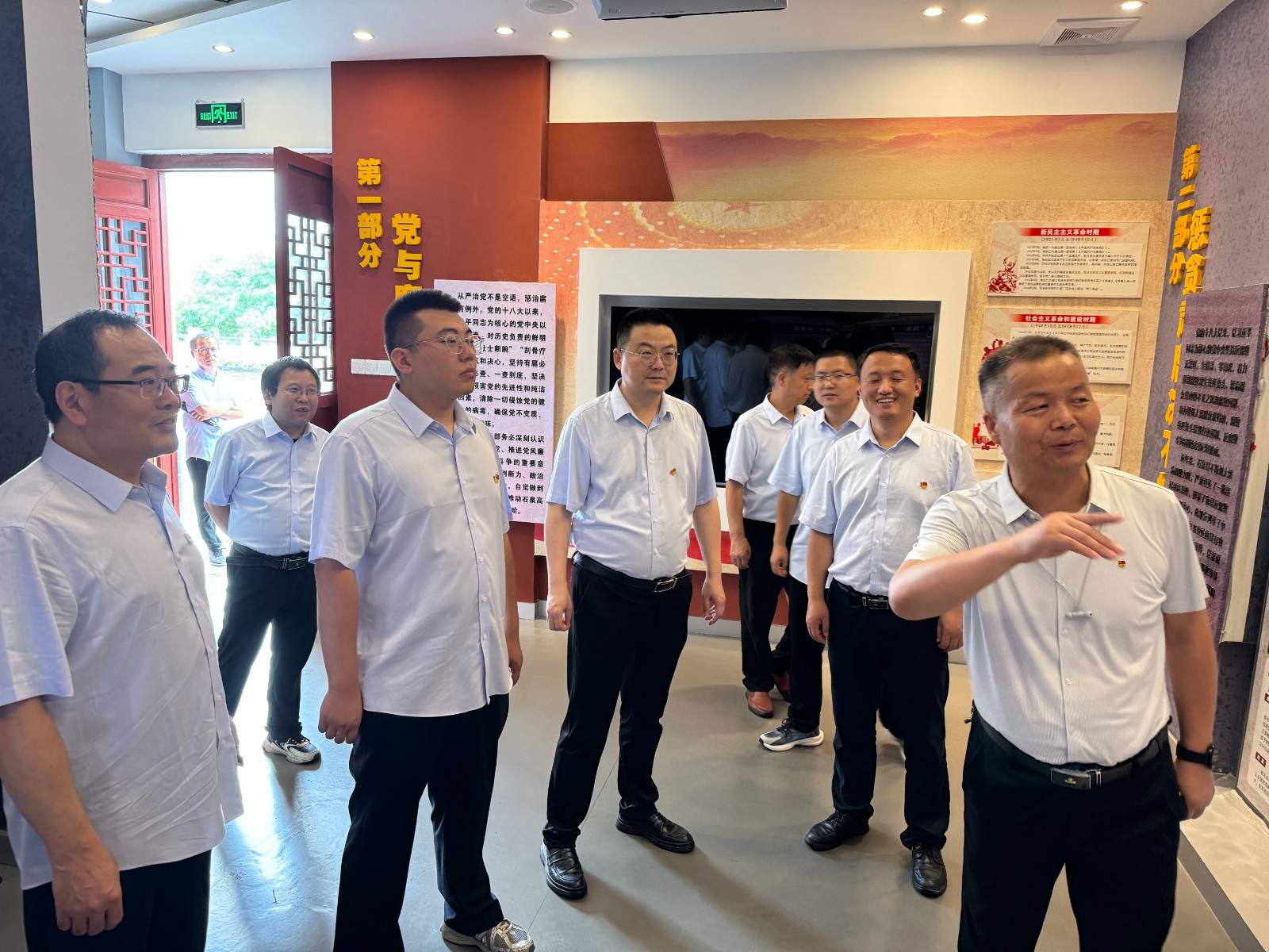 參觀結束后,全體黨員在水工環院黨支部書記余鋼的領誓下,面對鮮紅的黨旗,重溫入黨誓詞,接受了一場深刻的黨性教育和警示教育。