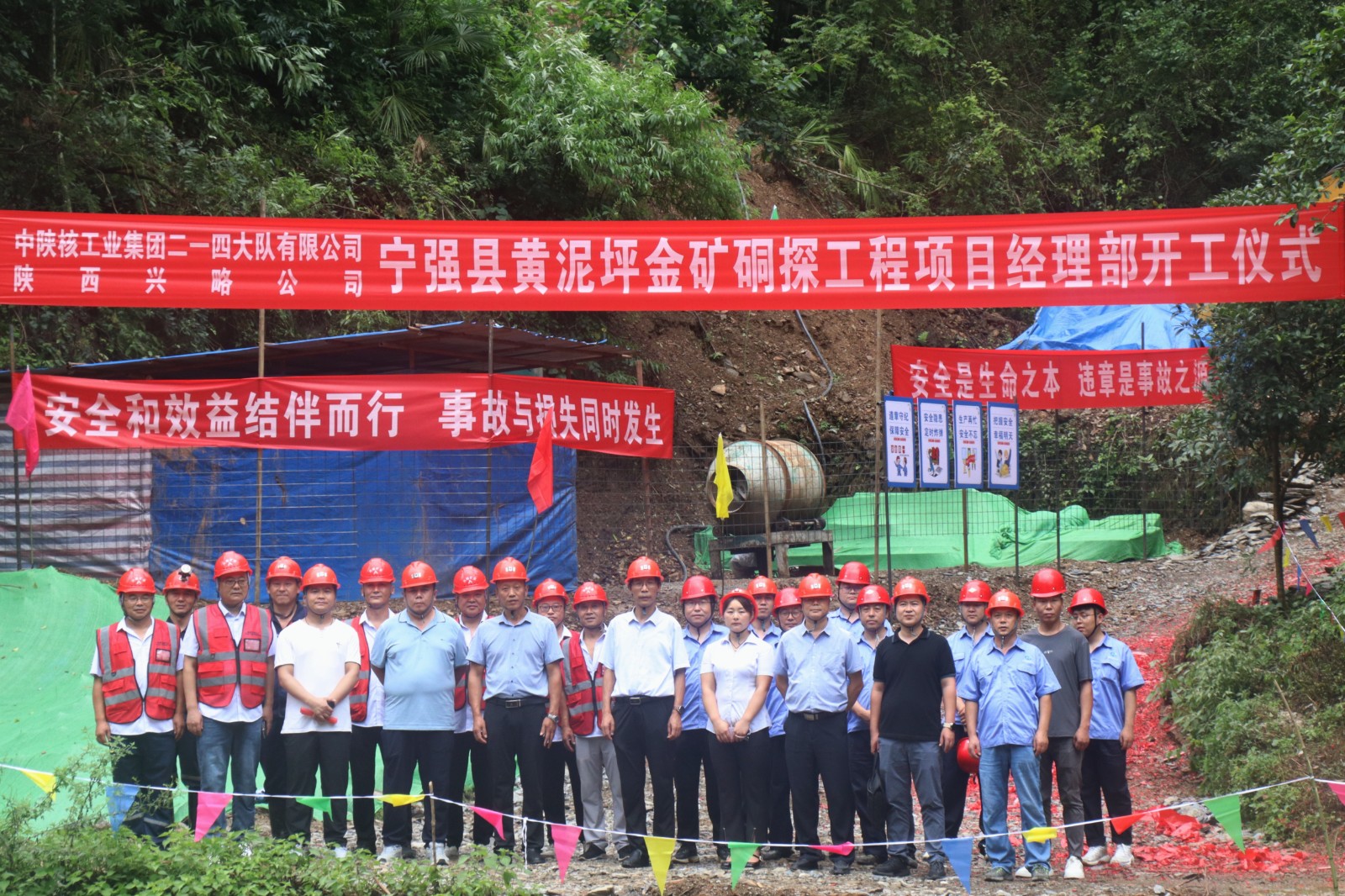 近日,公司寧強縣黃泥坪金礦詳查項目硐探工程已完成機械安裝、開硐檢查、安全驗收等準備工作。83日下午,公司黨委書記、董事長鄧盛波,黨委副書記、總經理司金強和公司副總經理、總工程師王朋,前往施工現場檢查各項準備工作并參加了硐探開工儀式。