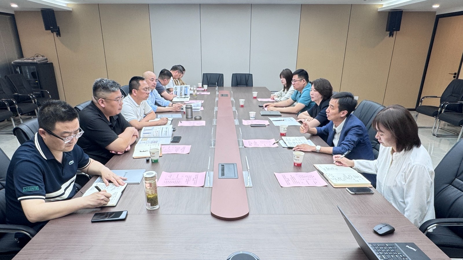 陜西市政建筑設計研究院有限公司黨總支委員、副總經理張鵬科,黨總支委員、副總經理王勇,中陜核工業集團二一四大隊有限公司黨委委員、副總經理楊波,副總經理冉軍林,總工程師高政偉及相關經營單位和部門負責人參加座談。