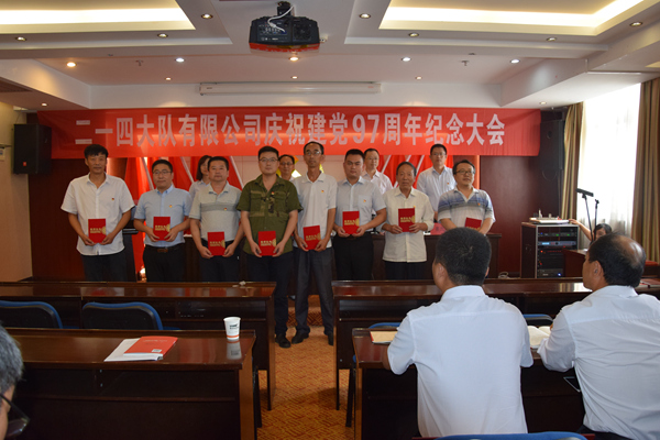 2018年6月29日下午,二一四大隊有限公司在城固燎原酒店隆重舉行召開慶祝建黨97周年紀念暨表彰黨內先進大會,公司領導、黨員干部共60人參加了會議,會議由黨委委員、總工程師王義忠主持。