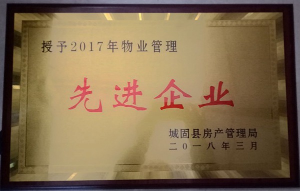 2018年4月11日,城固縣房產管理局召開了物業管理工作會議。會上,公司物業管理服務中心榮獲2017年度物業管理先進企業榮譽稱號。