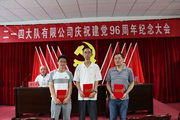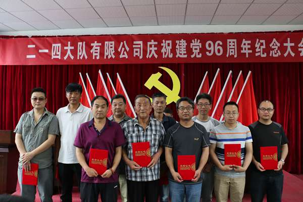 2017年6月30日上午,二一四大隊有限公司隆重召開慶祝建黨96周年紀念暨表彰黨內先進大會,公司領導、中層干部、全體黨員及入黨積極分子共60人參加了會議,會議由公司紀委書記、工會主席司金強同志主持。