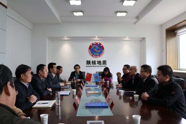 10月27日,湖南省核工業(yè)地質(zhì)局三〇四大隊副大隊長張昭賢一行四人來公司交流考察。公司總經(jīng)理田社生、黨委書記李新平、副總經(jīng)理李世偉、總工程師王義忠與張昭賢一行親切座談交流。