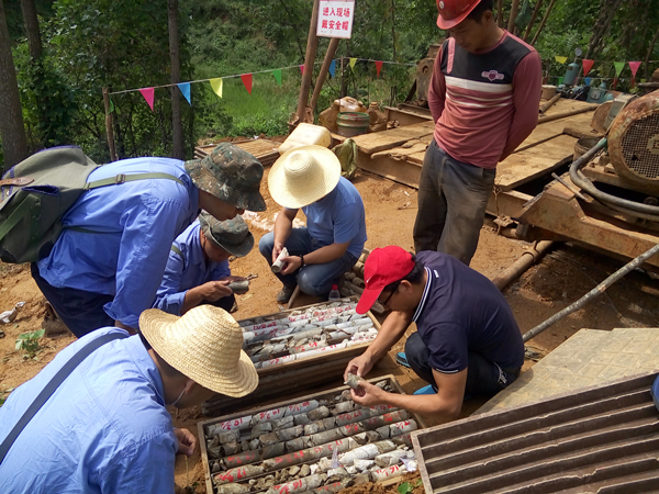 檢查組一行首先到野外鉆探施工現場進行了實地查看,認真翻看巖心,查看探槽工程,并對礦(化)體露頭進行追索。回到項目組后,王義忠組織召開項目研討會,針對目前鉆探施工過程中存在的問題進行了深入討論。