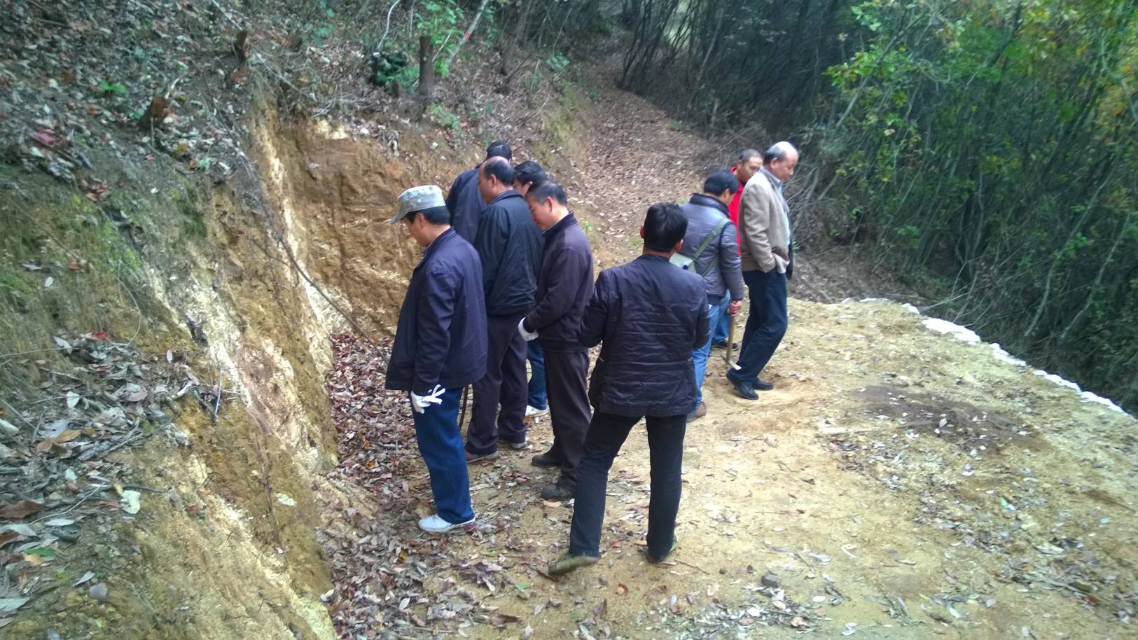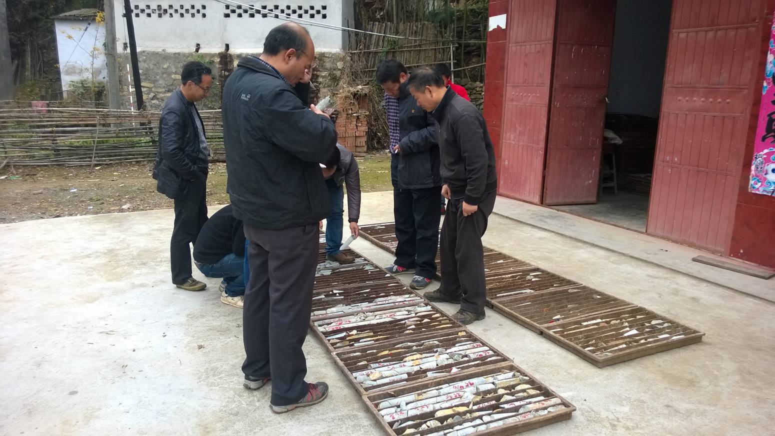 11月14日,西北監理辦專家檢查組在大隊總工李世偉的陪同下,到秋樹坪地區實地檢查了槽、鉆探工程質量,觀看了巖心。
