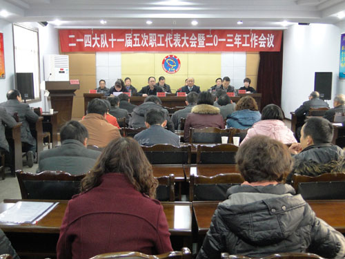 1月10日至11日,大隊十一屆五次職工代表大會暨二〇一三年工作會議在機關三樓會議室隆重召開。來自全隊各單位和部門的60多名代表參加了會議。